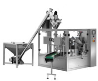旋轉式給袋式自動包裝機適用于平面袋,自立袋,拉鏈袋等各種形狀的熱封的復合袋.